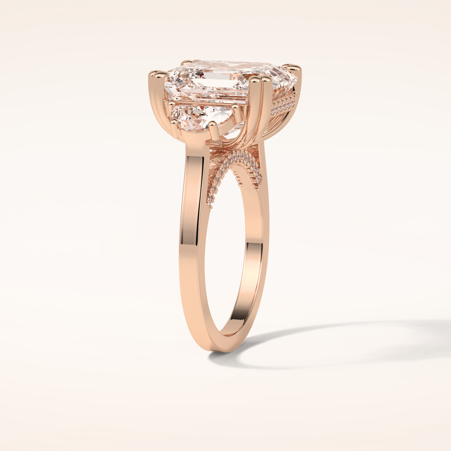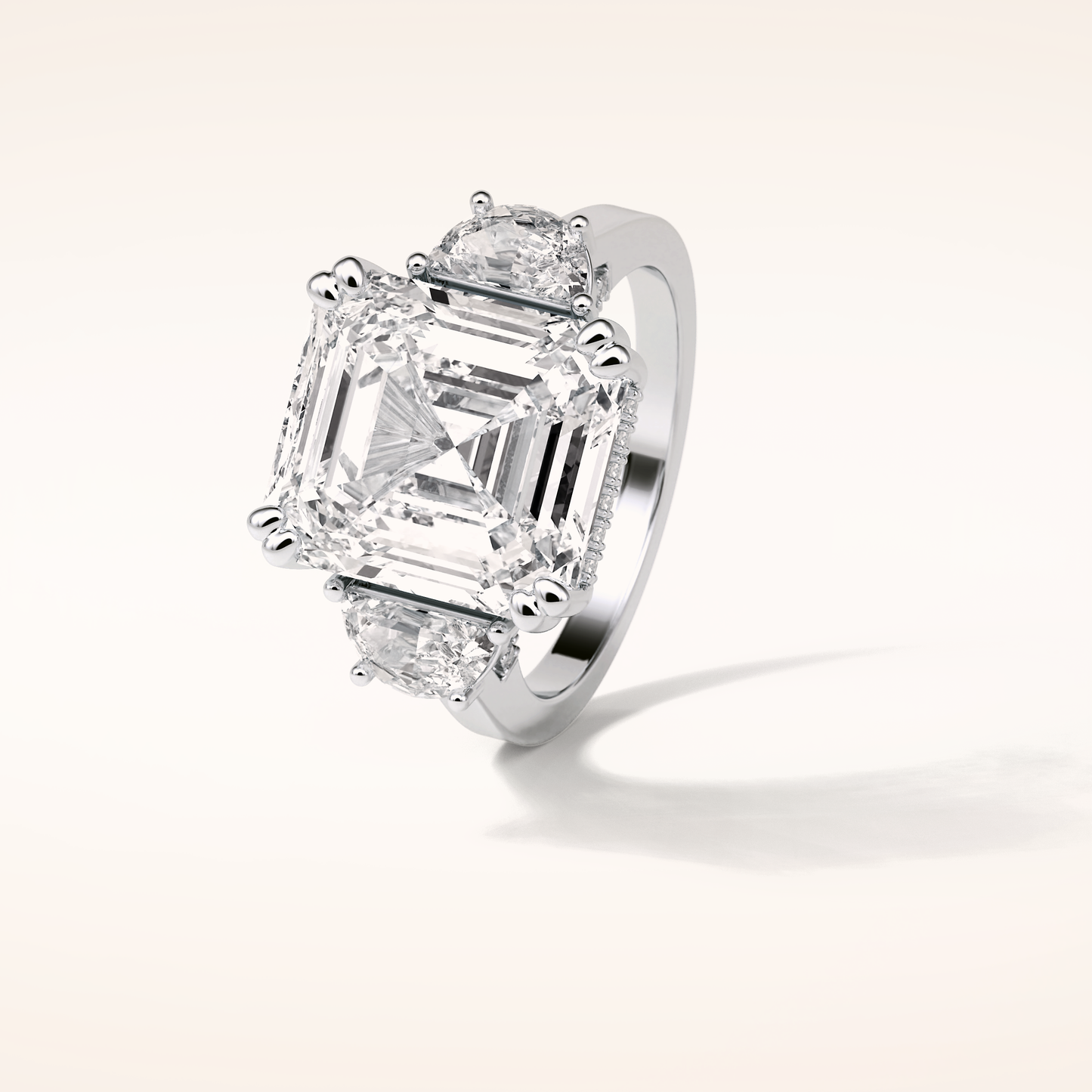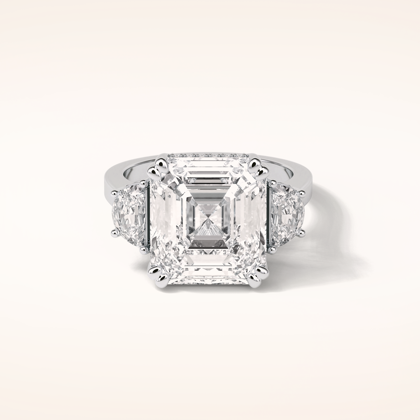 Asscher Three Stones Lab Grown Diamond Engagement Ring