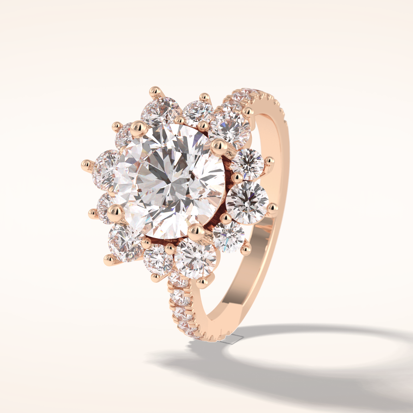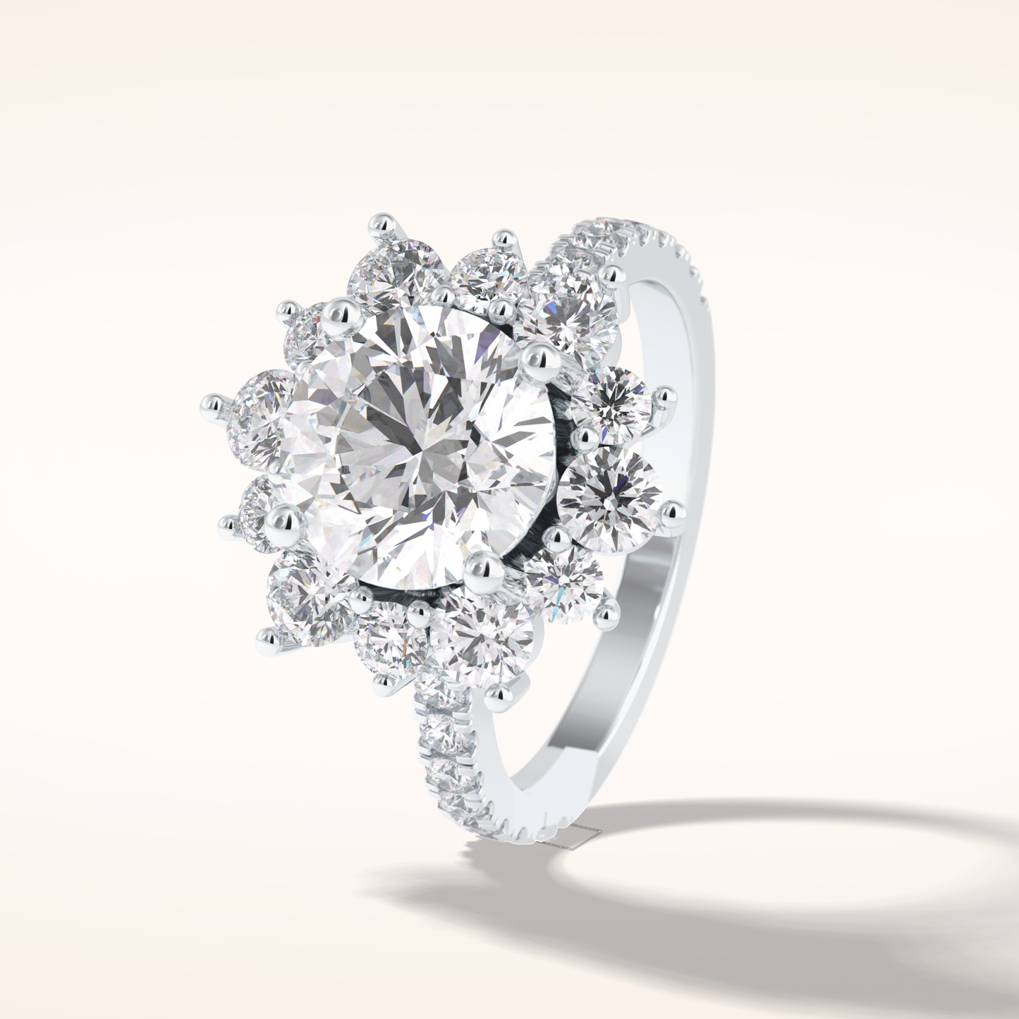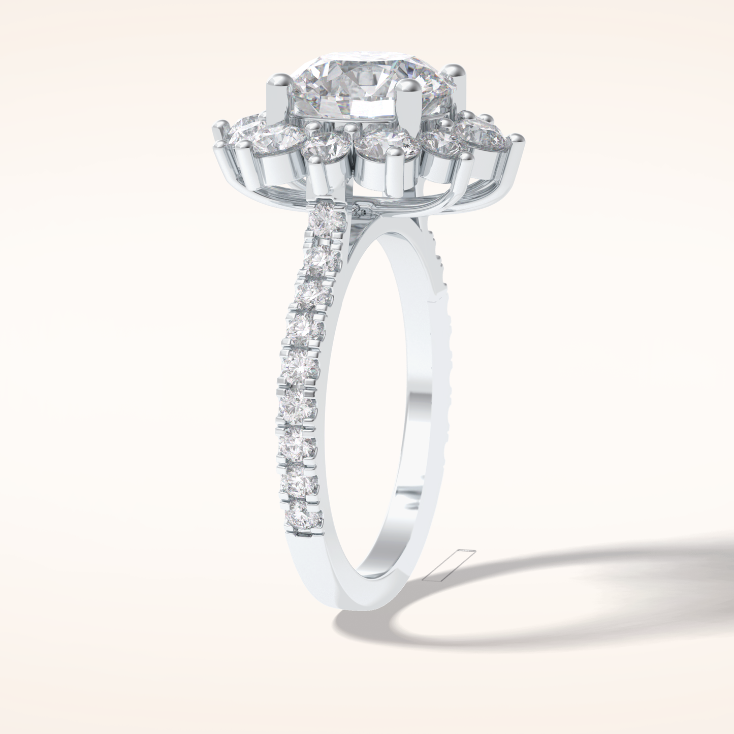 Round Cut Halo & Pave Lab Grown Diamond Engagement Ring
