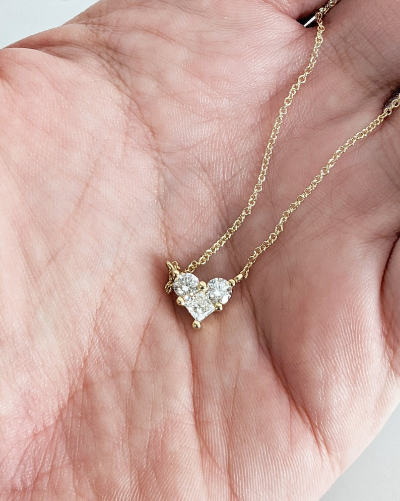 0.8 TCW Princess & Round Cut Moissanite Heart Shaped Pendant Necklace