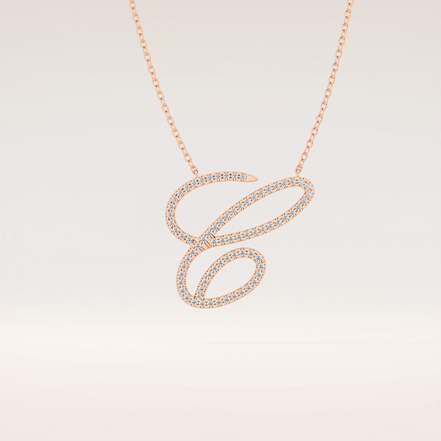 0.144 TCW Round Lab Grown Diamond E Initial Necklace
