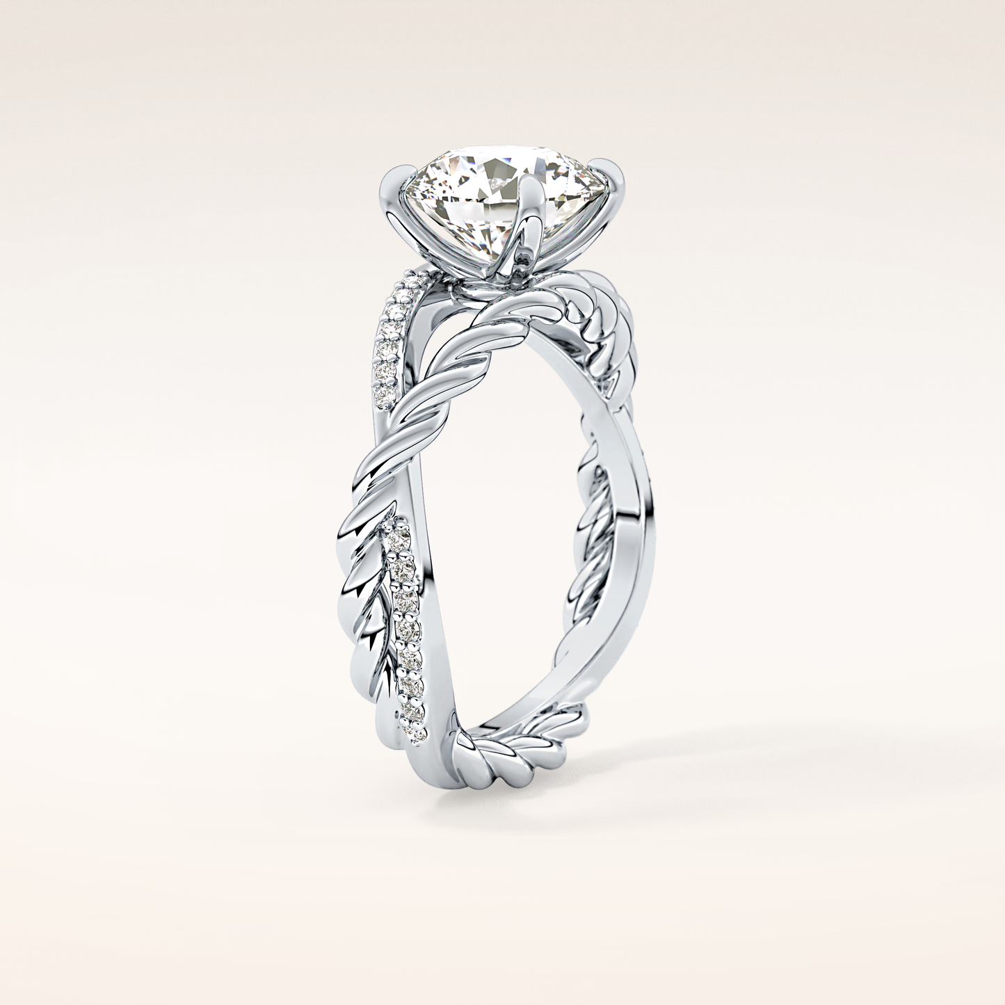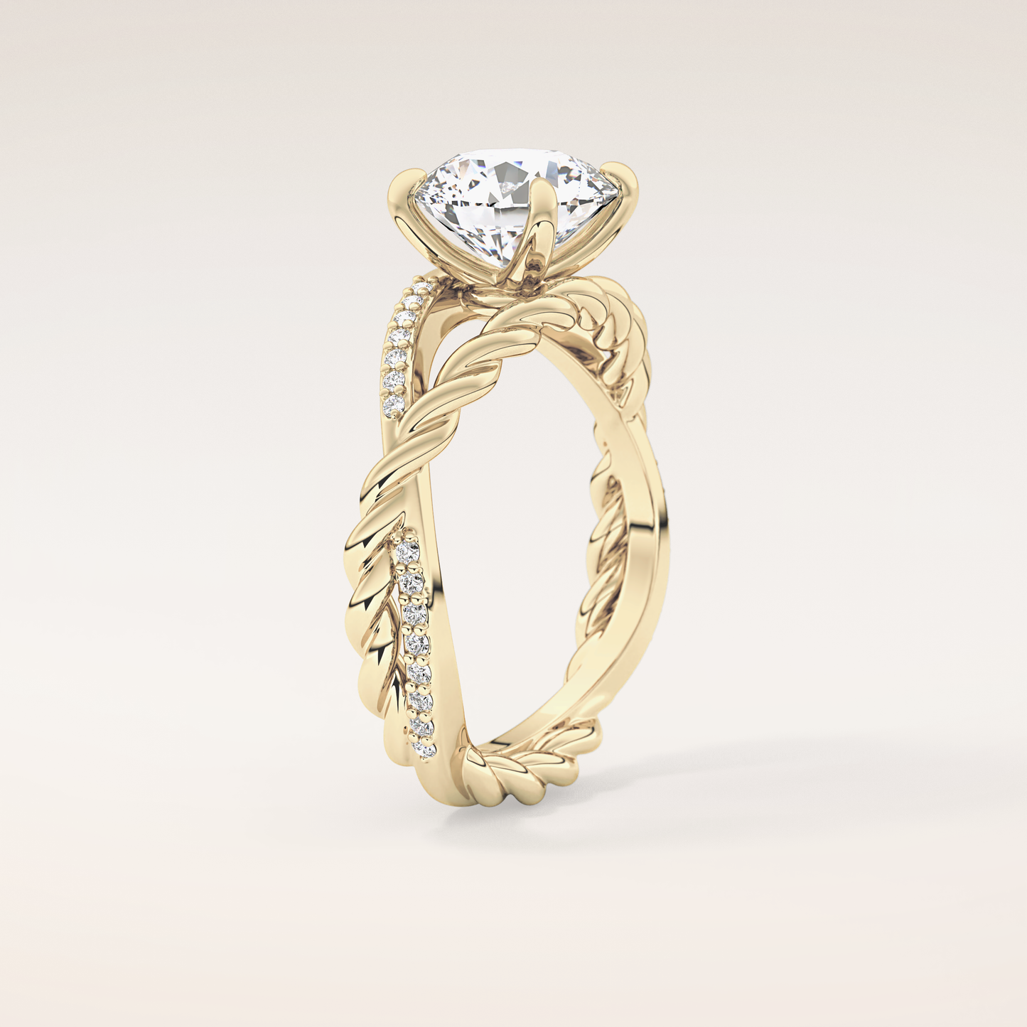 Round Pave Twisted Shank Lab Grown Diamond Engagement Ring